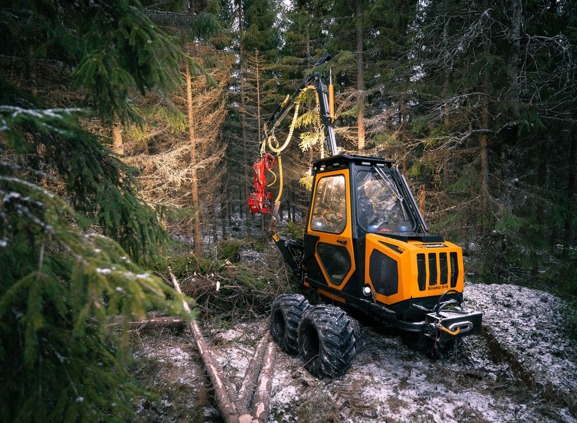 Käytössämme on pienmetsäkone ketju. Kinetic 437 ja Kinetic 325.